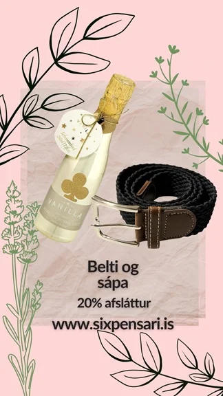 Konudagsgjöf – kampavínssápa og teygjubelti á 20% afslætti.