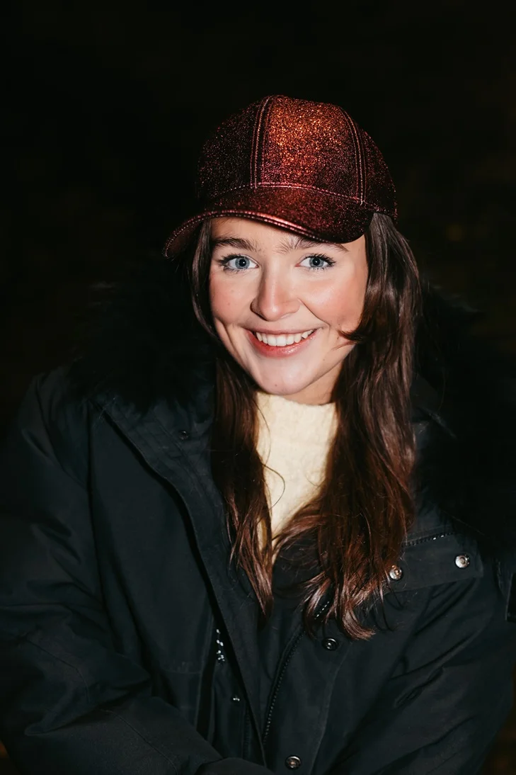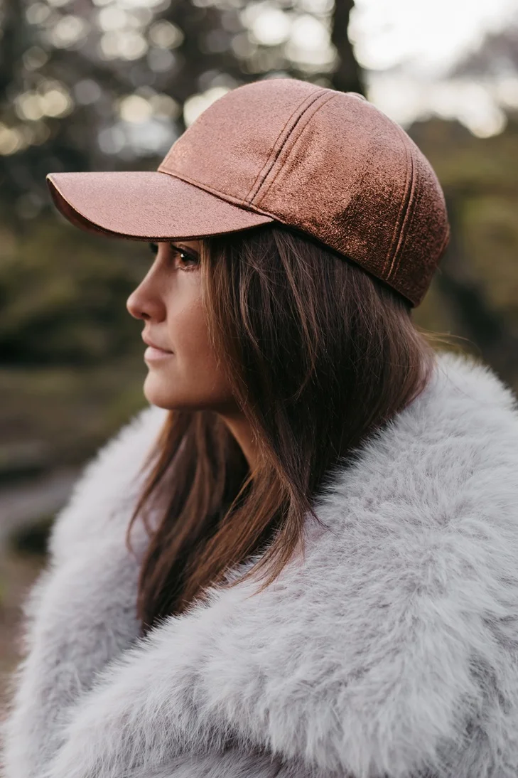 Glimmer áferð og fallegir litir einkenna þessa derhúfu og gera hana glimrandi fína.